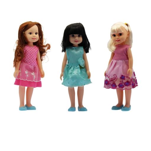 Ez a bájos baba tökéletes választás a gyermekek számára, akik szeretnek gondoskodni és játszani. A hagyományos üvegszemű kialakítás és a hosszú, fésülhető haj különleges varázst kölcsönöz neki. A baba 31 cm magas, így ideális méretű a kis kezek számára. Három különböző színváltozatban érhető el, hogy mindenki megtalálja a kedvencét. Megrendeléskor megjegyzésben adja meg a kért színt!