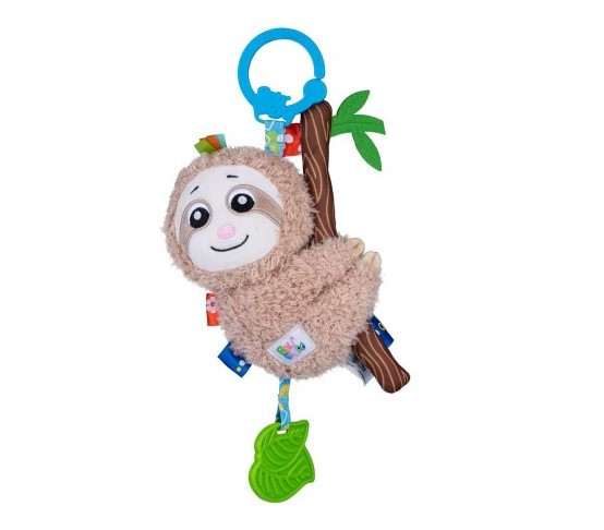 A lajhárban elrejtett csörgő kellemes hanggal vidítja fel a gyermeket minden alkalommal, amikor megrázza a játékot, az állathoz rögzített puha levél - egy rágóka - pedig biztosan hasznos lesz a fogzás során.