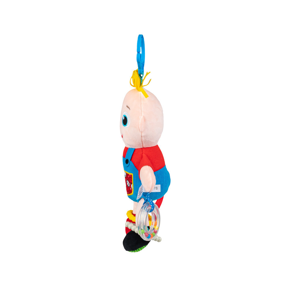 Baba babának! Ez a vidám, fiú alakú textilbaba egy medál, amely mindenhová elkísérheti a gyermeket, sétálni és otthon is. A játék számos meglepetést rejt. Rágókával és csörgővel díszített, az anyaga pedig különböző textúrájú, ami serkenti a gyermek tapintásérzékét. A praktikus medál lehetővé teszi, hogy a babát bárhová rögzítsd. A termék újszülött kortól használható!