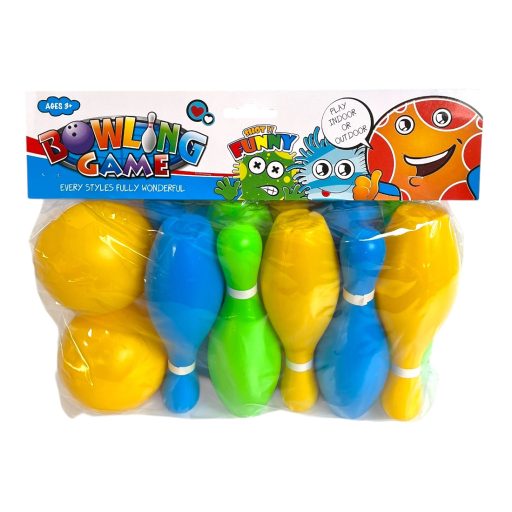 Bowling klt., 6 bábu, mesés, 2 golyó, 19x16 cm dob.