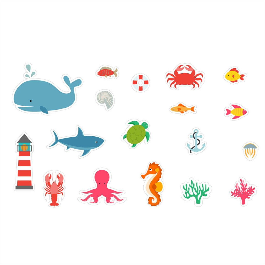 A Buddy & Barney Tapassz a csempére fürdőjátékokkal minden pancsolás csupa játék és izgalom! A szettben lévő csempére tapasztható és újraragasztható matricák mókás társaságot varázsol a gyerekek mellé fürdés közben. Ez a készlet 19 matricát tartalmaz a vízi világból, köztük bálnát, teknőst, csikóhalat, rákokat, korallt, egyéb halacskákat, és más ismerős képződménít a vízpartok világából, mint a hínár. Sőt, egy világíótorony is van a matricák között. A matricák egy csempére tapasztható hálós tasakban érkeznek a könnyű és praktikus tároláshoz. 3 éves kortól ajánljuk.