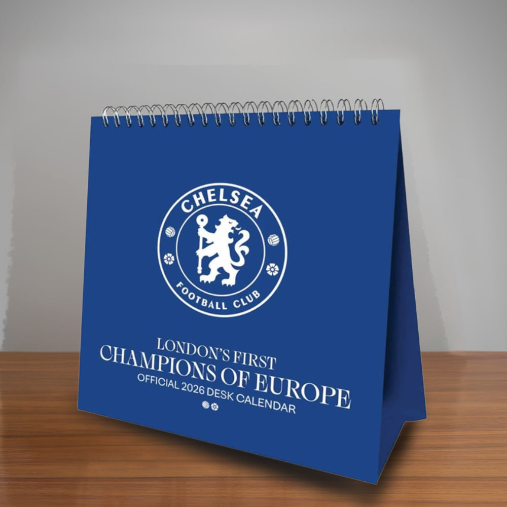 Kövesd a 2026-os évet a Chelsea hivatalos asztali naptárával! Praktikus, spirálos kialakítása és kompakt mérete ideális az íróasztalon, így minden hónap áttekintése egyszerű és kényelmes.