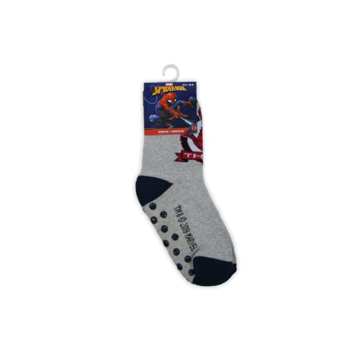Csúszásgátlós gyerek bokazokni - Pókember - teliplüss - szürke - 23-26