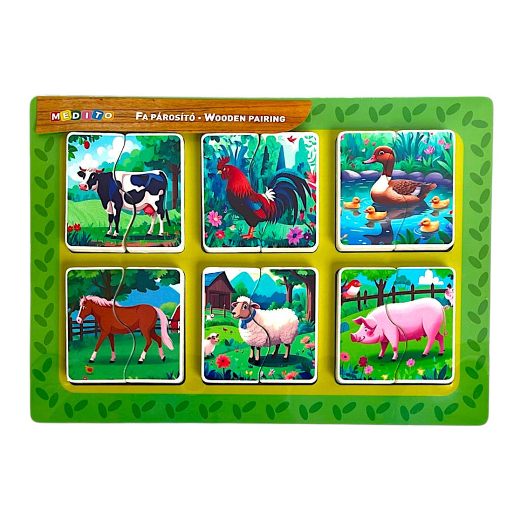 Fa farm állat párosító, puzzle kép, kép alatt kép, 6 db, 30x21 cm pvc csom