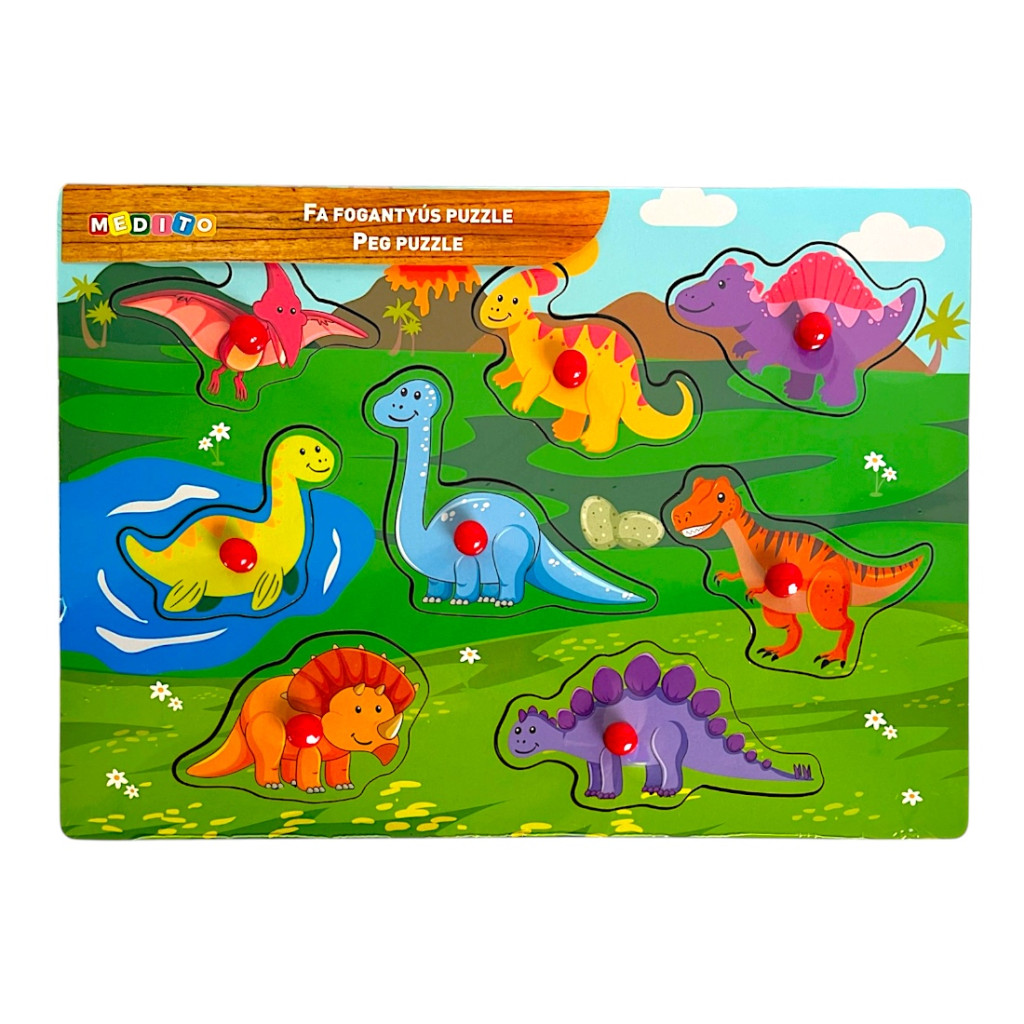 Fa ki-berakó, fogantyús, dínók, 8 db, 30x21 cm pvc csom