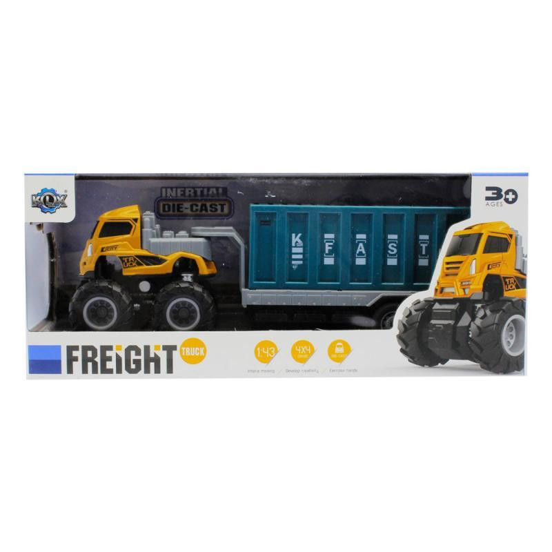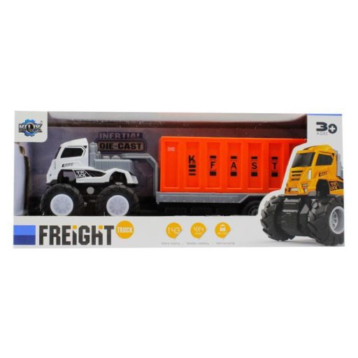 Fém teherautó, konténerszállító, lend., 2 szín, 30x13 cm dob.
