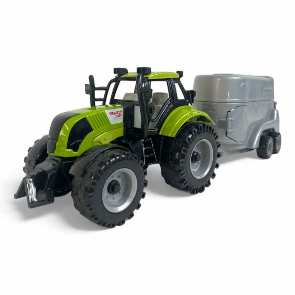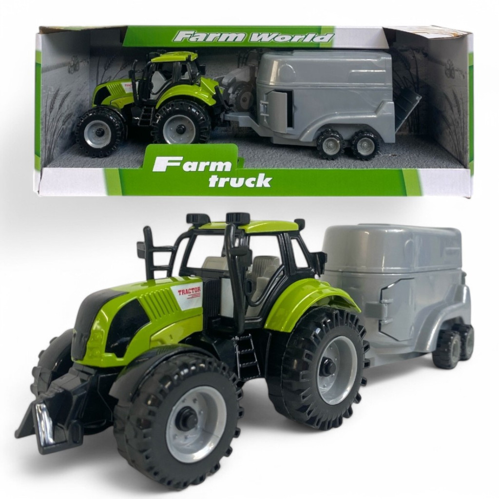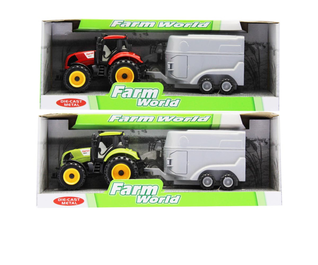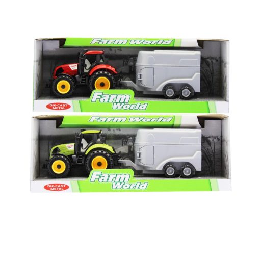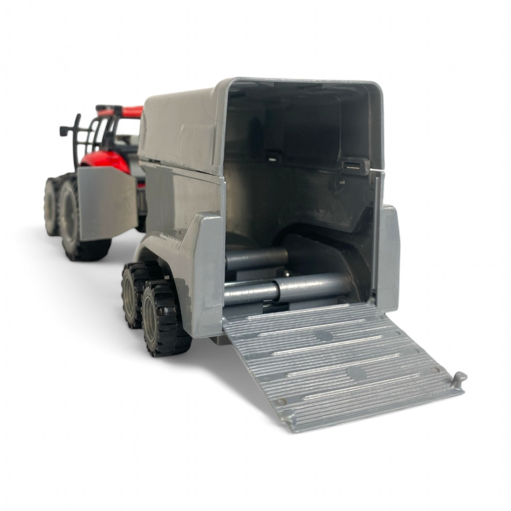 Ha a lovat szállítani kell a farmról, kell egy lószállító traktor utánfutóval. Ez a fémből készült lószállító éppen megfelelő lehet. Meglepetés lesz, hogy zöld, vagy piros színben érkezhet. 3 év felett ajánljuk. Csomagolása dobozban, 32x12 cm.
