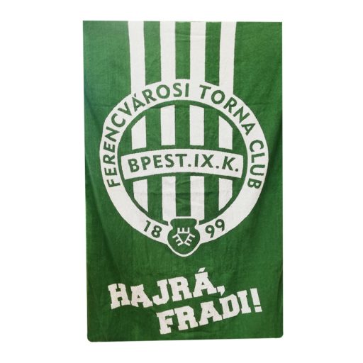 Ez a nagy méretű Fradi törölköző tökéletes választás minden igazi Ferencvárosi szurkolónak. A törölköző mérete 150x100 cm, ami ideális a strandon, a medencénél vagy akár otthoni használatra is. A zöld-fehér csíkos szőtt design és a címeres "Hajrá FRADI" felirat büszkén hirdeti a kedvenc csapatodat. A törölköző anyaga 100% pamut, szálsűrűsége pedig 500g, ami garantálja a puhaságot és a tartósságot. Színes kialakításának köszönhetően bármilyen környezetben kitűnik. Támogasd a Fradit stílusosan ezzel a nagyszerű törölközővel.