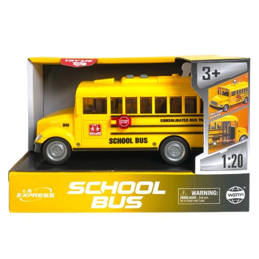 Iskolabusz el., hang,+fény, lend., 20x9 cm dob. Gombel.