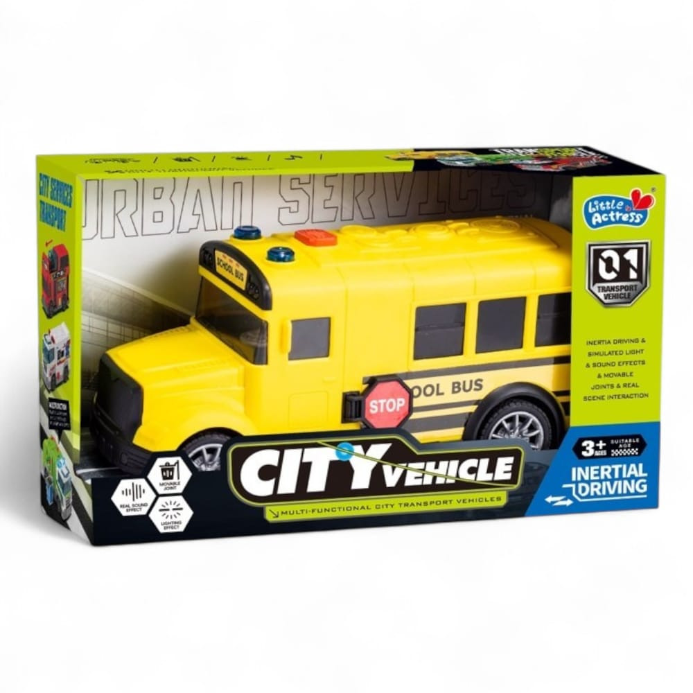 Iskolabusz, el., hang+fény, lend., 24x15 cm dob.