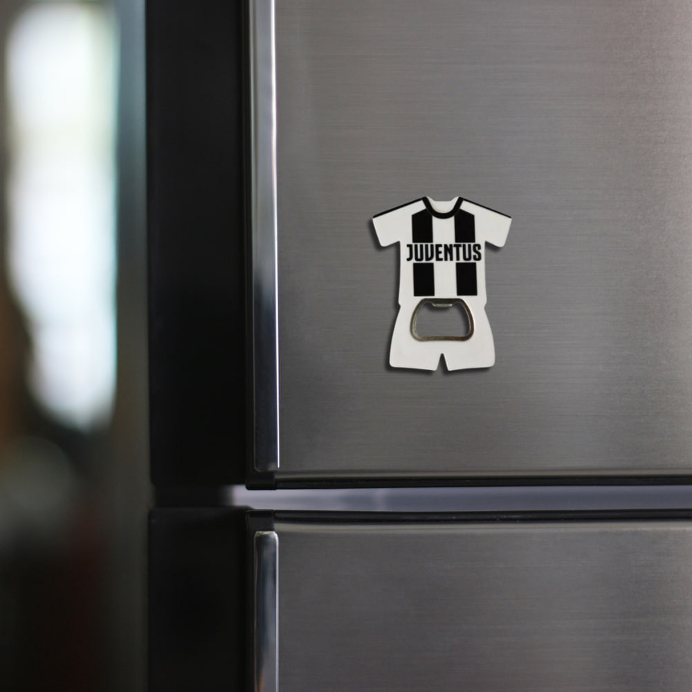 Mutasd ki Juventus-rajongásod ezzel a csíkos, mez alakú hűtőmágnessel és sörnyitóval — praktikus és látványos kiegészítő minden meccsnapra.