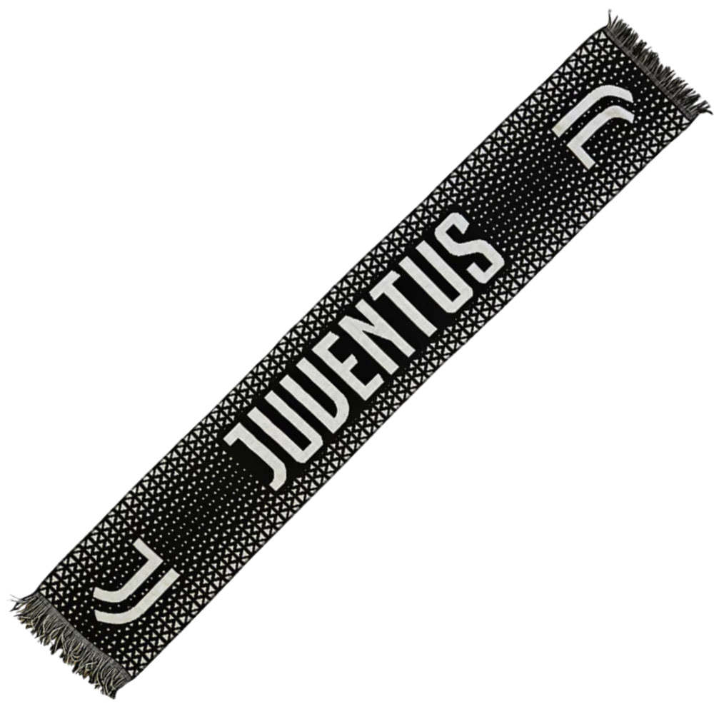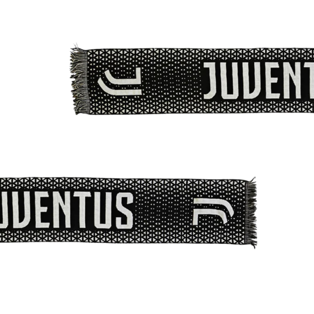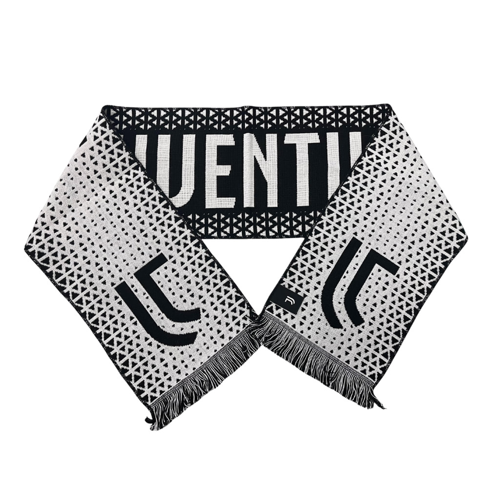 Mutasd ki Juventus iránti rajongásod ezzel a stílusos szurkolói sállal — fekete alapon fehér "JUVENTUS" felirattal és a klub címerével díszítve. A sál modern, háromszöges geometrikus mintázata egyedi megjelenést kölcsönöz, miközben büszkén viselheted kedvenc csapatod színeit.