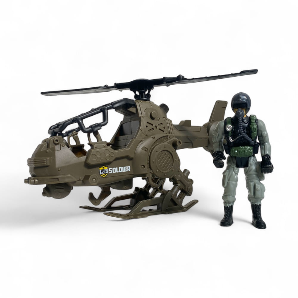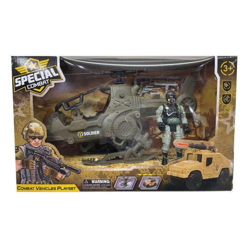 Katonai klt., helikopter, + fig., 28x17 cm dob.