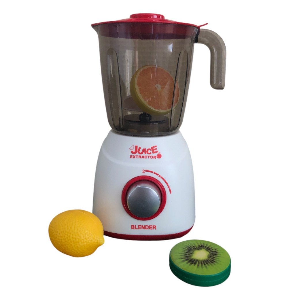 Konyhagép, turmixgép, el., hang+fény, benne gyümölcs, 16x21 cm dob.