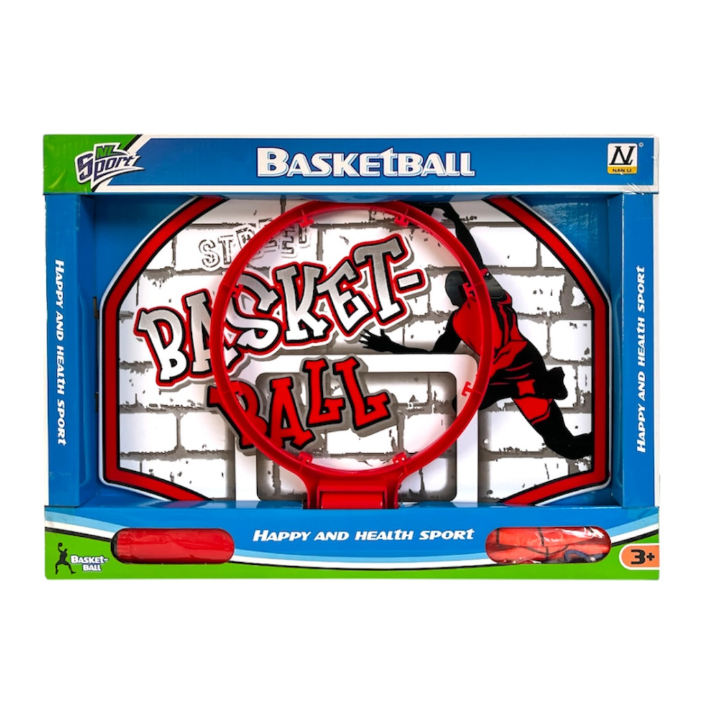 Kosárpalánk klt., labda + pumpa, 48x35 cm dob.
