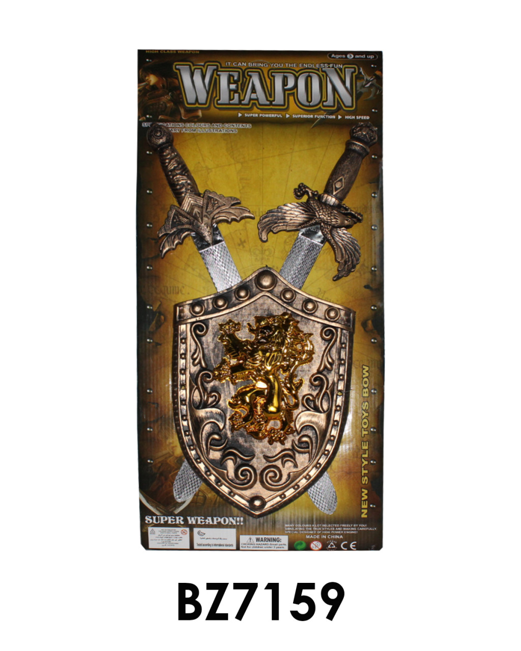 Pajzs készlet, 2 darab karddal, 27x65 cm lapon