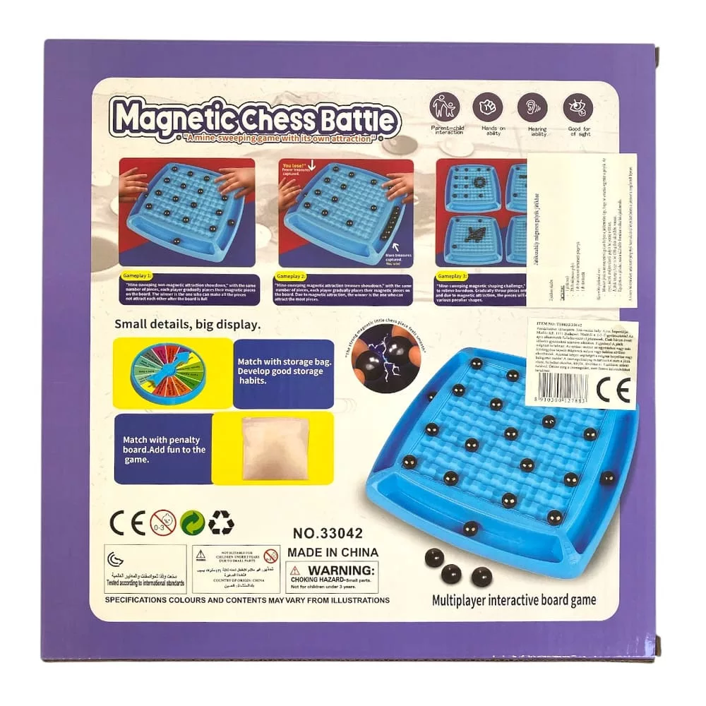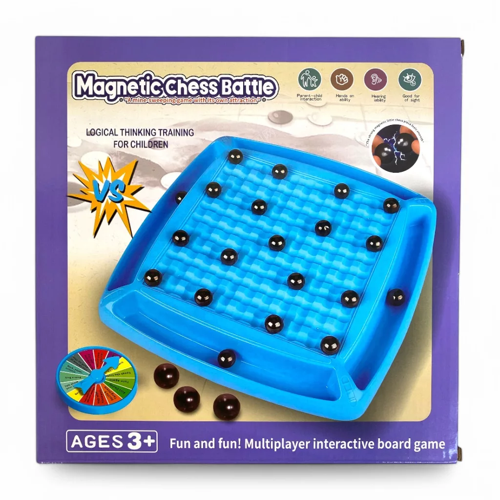 Fedezze fel a mágneses golyó taszító-vonzó társasjáték izgalmas világát! A 28x28 cm-es játéktábla különleges mágneses golyókkal és elemekkel van felszerelve, melyek segítségével a játékosok különféle stratégiákat dolgozhatnak ki. Tökéletes választás a családi és baráti összejövetelekhez, hiszen fejleszti a logikai és stratégiai gondolkodást. Megrendeléskor megjegyzésben adja meg a kért színt!