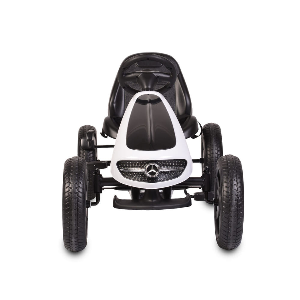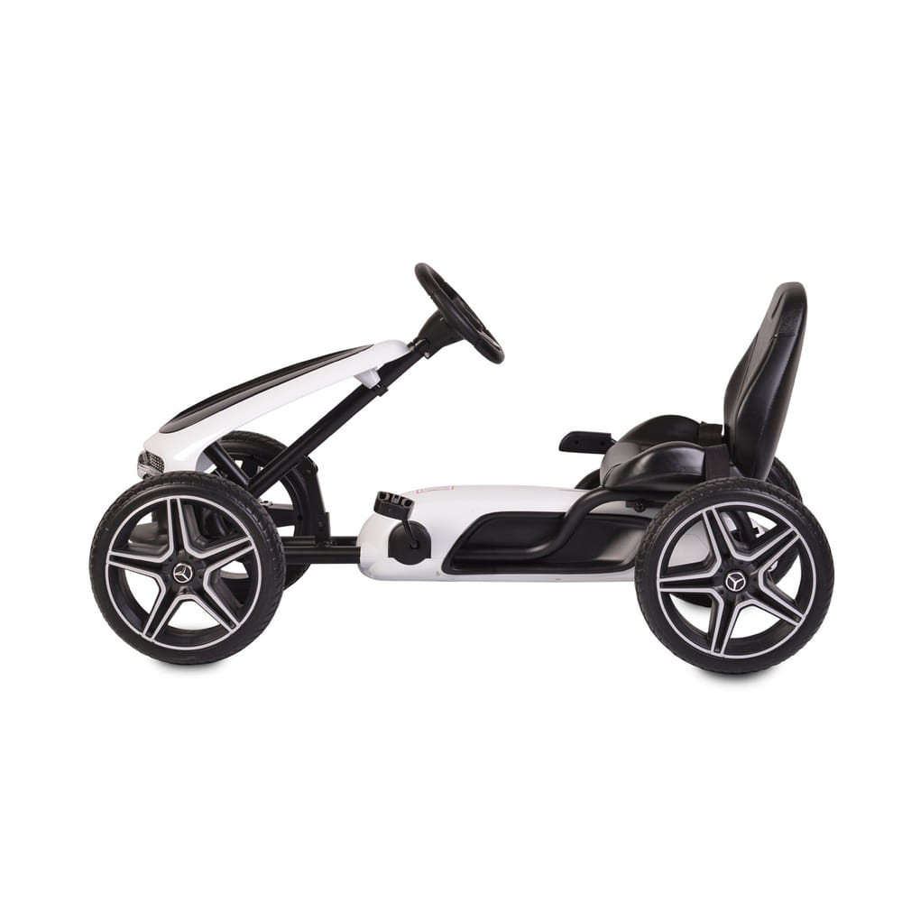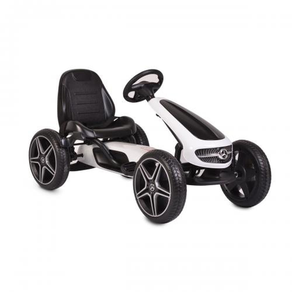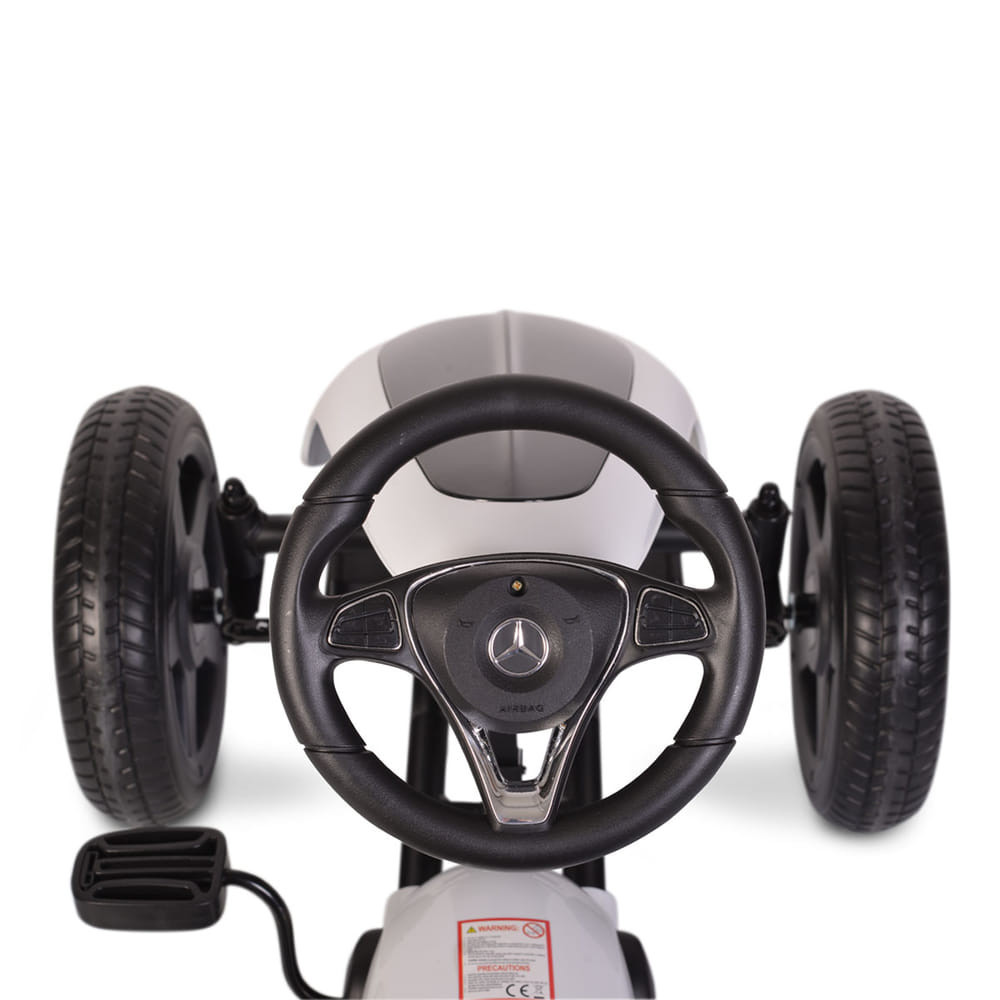 36 hónap feletti gyermekeknek, akiknek a maximális súlya legfeljebb 30 kg. Puha szintetikus EVA kerekekkel. Gombok a zene és a duda hangjához. Az autó előre és hátra mozgatható; a kézi fékkel megállítható, amely a jobb hátsó kerék fölött található. Engedéllyel rendelkezik a DAIMLER AG-tól (MERCEDES-BENZ). A termék mérete: 111,5 x 57 x 61 cm. Csomagolás mérete: 110 x 57,5 x 29 cm.