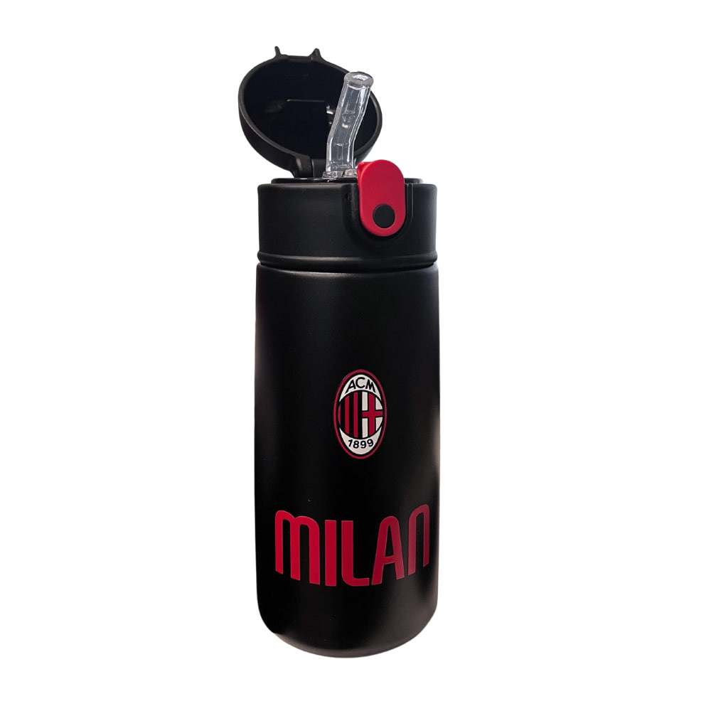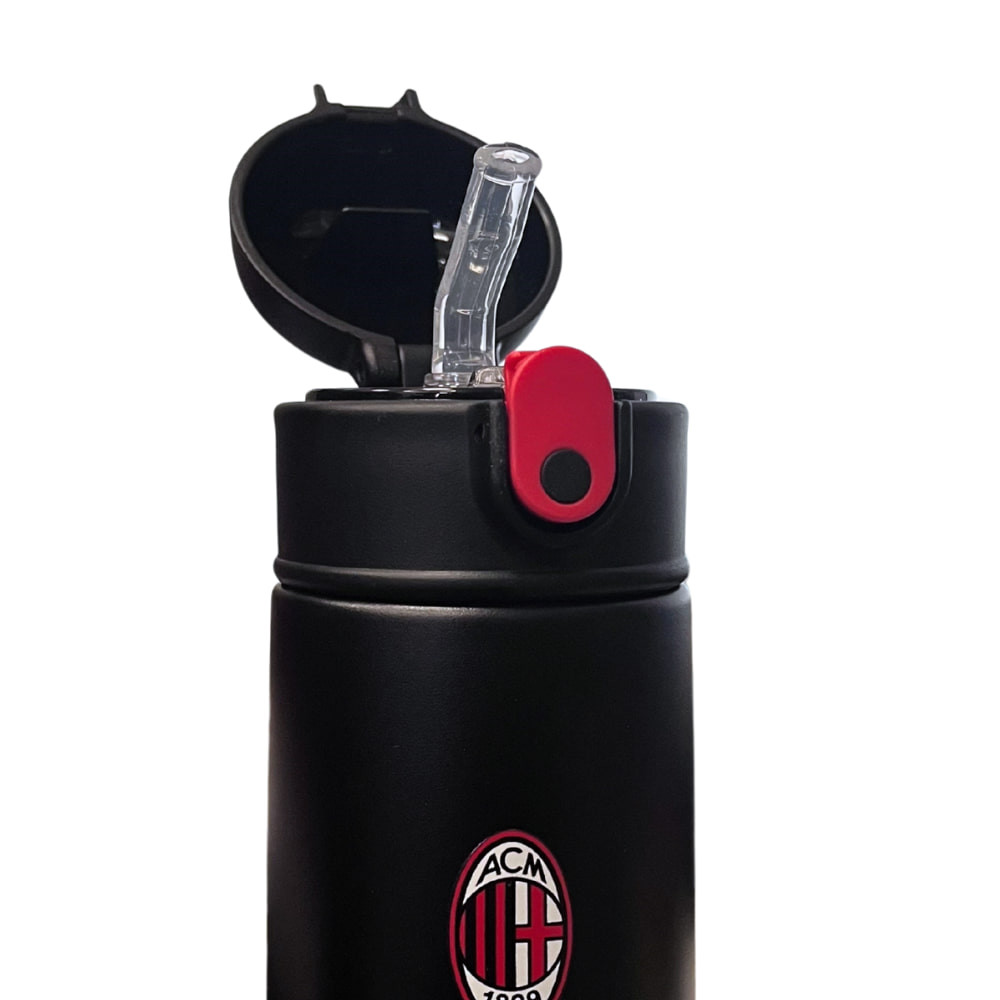 Maradj mindig friss és hidratált a nap folyamán ezzel a praktikus AC Milan termosz kulaccsal! A fekete alapon elhelyezett Milan felirat és címer igazán stílusossá teszi. A pattintós, szívószálas kupak kényelmes ivást biztosít, miközben a cseppmentes záródás gondoskodik a biztonságról. A kulacs 12 órán át tartja melegen, és akár 24 órán keresztül hidegen az italodat – tökéletes társ edzéshez, suliba vagy utazáshoz.