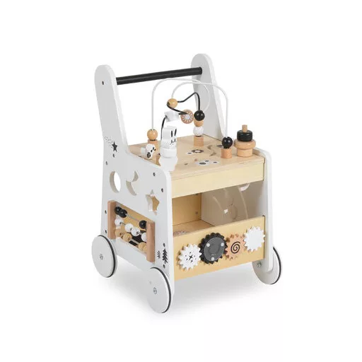 Támogassa gyermeke első lépéseit ezzel a Moni Toys által gyártott, kiváló minőségű anyagokból készült fa járássegítővel. A járás közbeni stabil támasztás mellett különböző tevékenységeket is kínál, amelyek a játékidőt szórakoztatóvá és tanulássá teszik. Jellemzők és tevékenységek: • Az első számolási lépésekhez szükséges számológép • A koordináció és az ok-okozati összefüggések felfedezéséhez szükséges fogaskerekek • Gyöngyös labirintus • Különböző formákkal ellátott formaválogató Előnyök: • Támogatja a járást és önbizalmat ad az első lépésekhez • Fejleszti a motorikus képességeket, a logikát és a koordinációt • Ösztönzi a kreativitást és a kognitív fejlődést • Biztonságos, kiváló minőségű anyagokból készült • 12 hónapos és annál idősebb gyermekek számára alkalmas