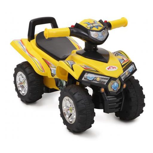 A gyerekek lovagolnak - az ATV -n olyan kialakítású, amely hozzájárul a gyermek motorikus készségeinek és egyensúlyának fejlesztéséhez.