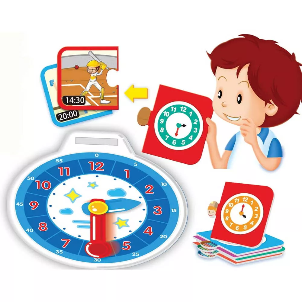 Ez az óra oktató és idő felismerő társasjáték ideális választás a gyermekek számára, akik éppen az idő fogalmának elsajátításával ismerkednek. A 21x21 cm-es dobozban található játék szórakoztató módon segíti a kicsiket az óra leolvasásában és az idő helyes felismerésében. A játék különböző színekben érhető el. Megrendeléskor megjegyzésben adja meg a kért színt!