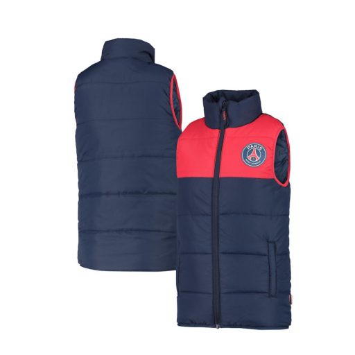 PSG mellény. Steppelt. Bélelt. Gyerek méret. Kék-piros színű. Elején gumírozott PSG logóval. Mosás: Mosógépben mosható 30 fokos vízben. Eredeti Licenszes termék egyenesen Franciaországból.
