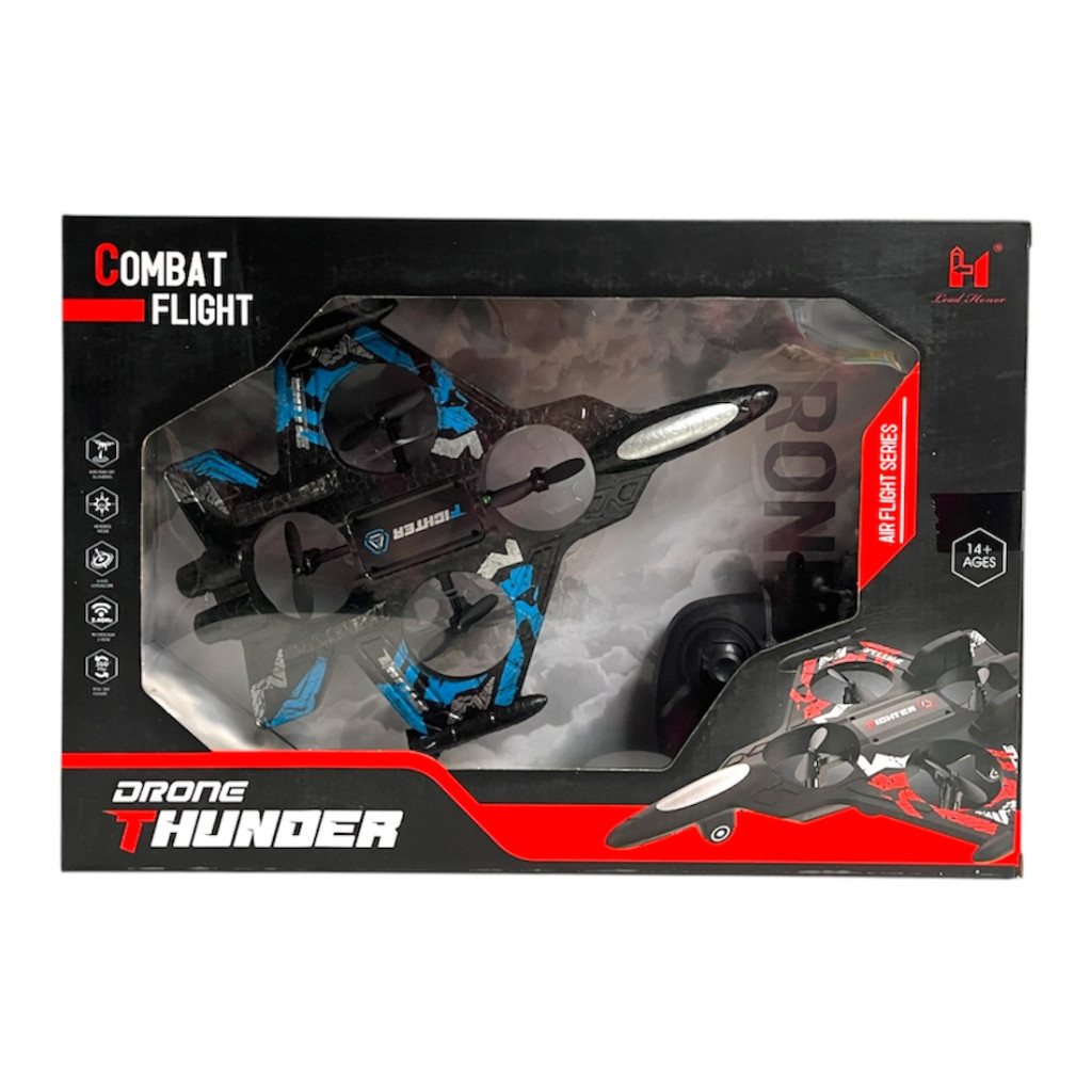 R/C drón, vadászrepülőgép, el., vil., USB töltős, 2 szín, 36x25 cm dob.