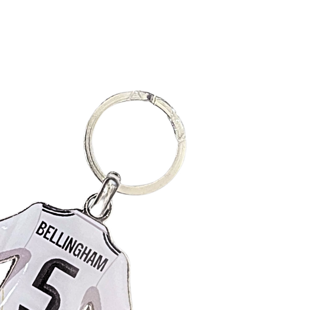 Ez a mez alakú, fémből készült kulcstartó ideális választás a Real Madrid és Bellingham rajongói számára.