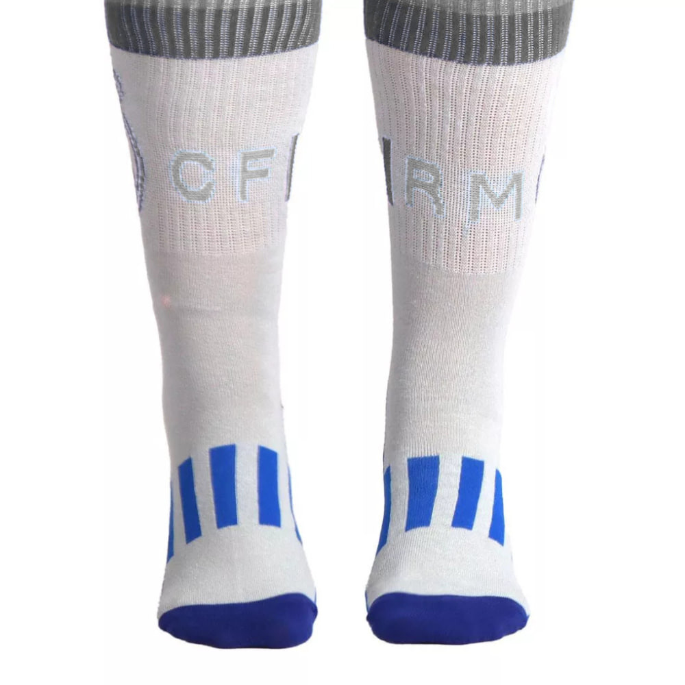 Mutasd meg a Real Madrid iránti elkötelezettségedet a mindennapokban is ezzel a kényelmes, hosszú szárú fehér zoknival! Kiváló minőségű anyagösszetételének köszönhetően tökéletes választás sportoláshoz és hétköznapi viselethez egyaránt.