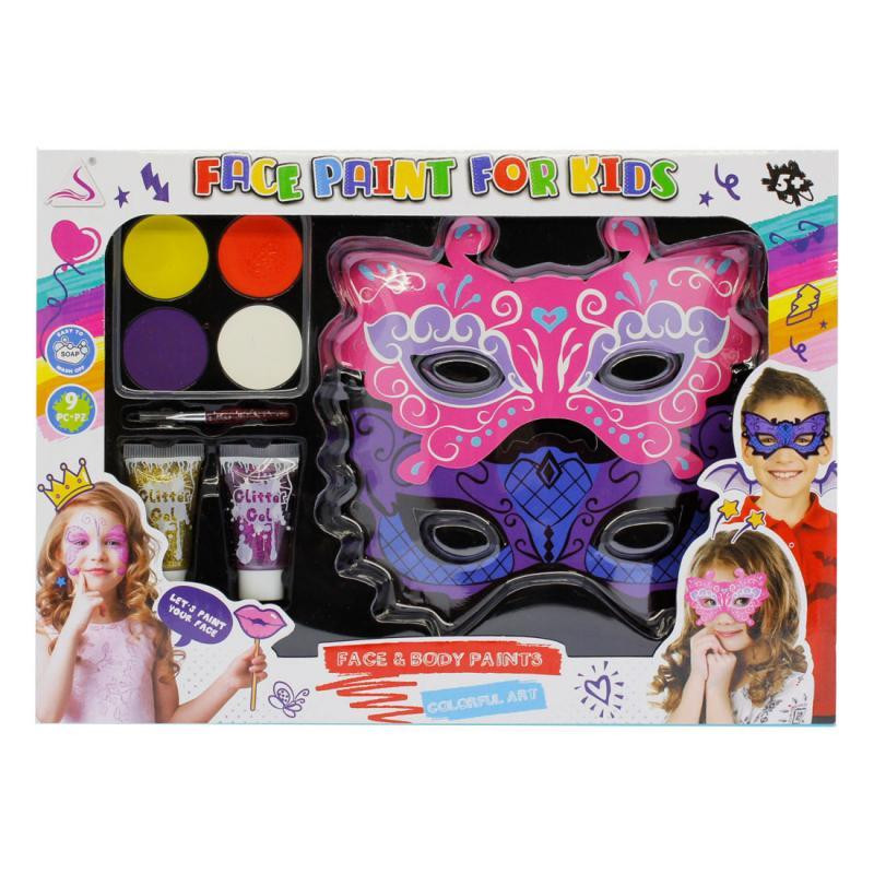 Smink készlet , arcfesték és testfesték 2 darab maszkkal, 29x21 cm dobozban.