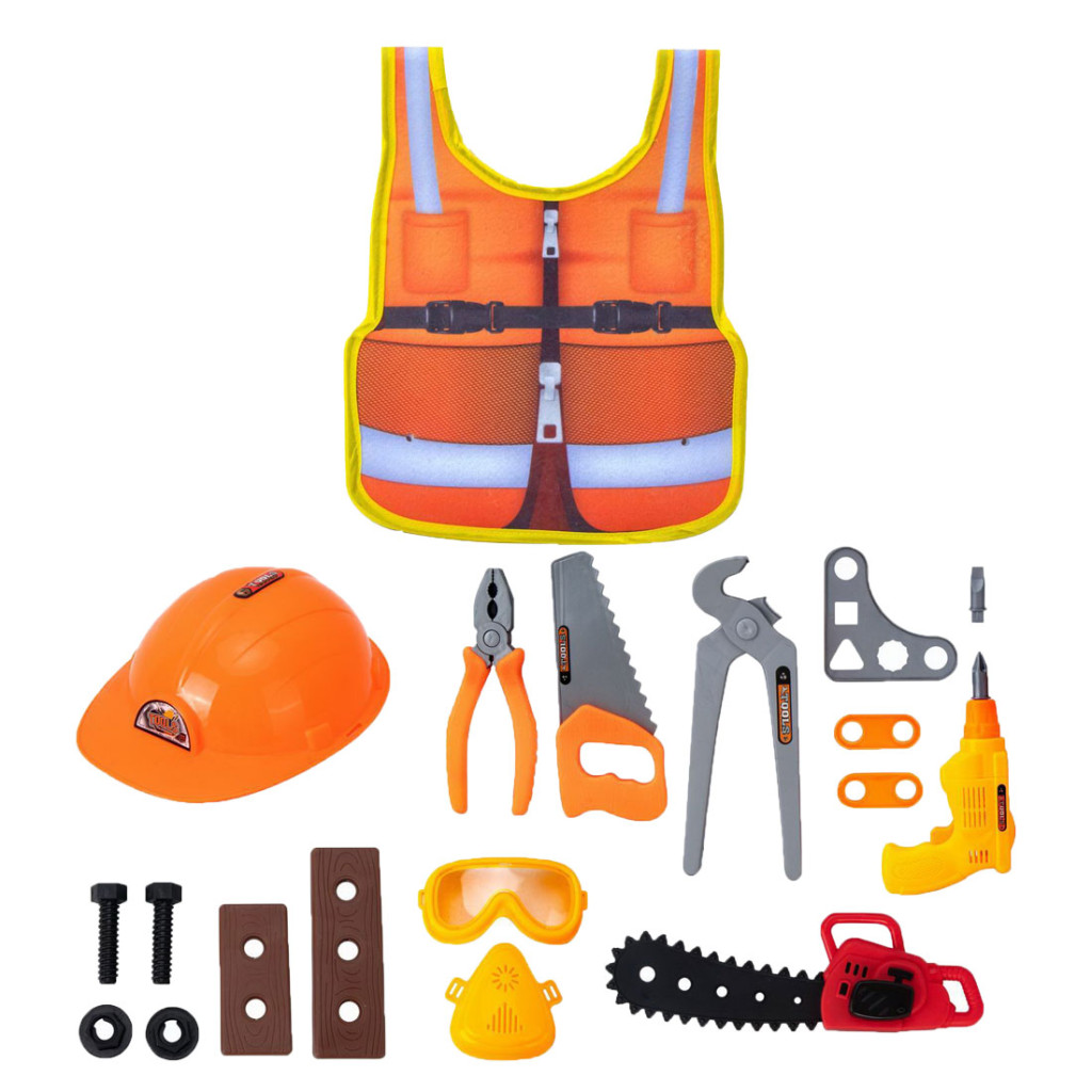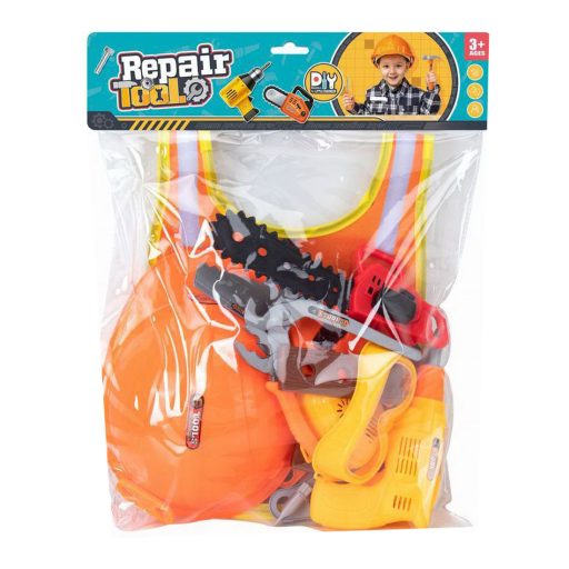 Szerszám klt., + munkás sisak + mellény, jelmez, 33x42+ cm zacsk.