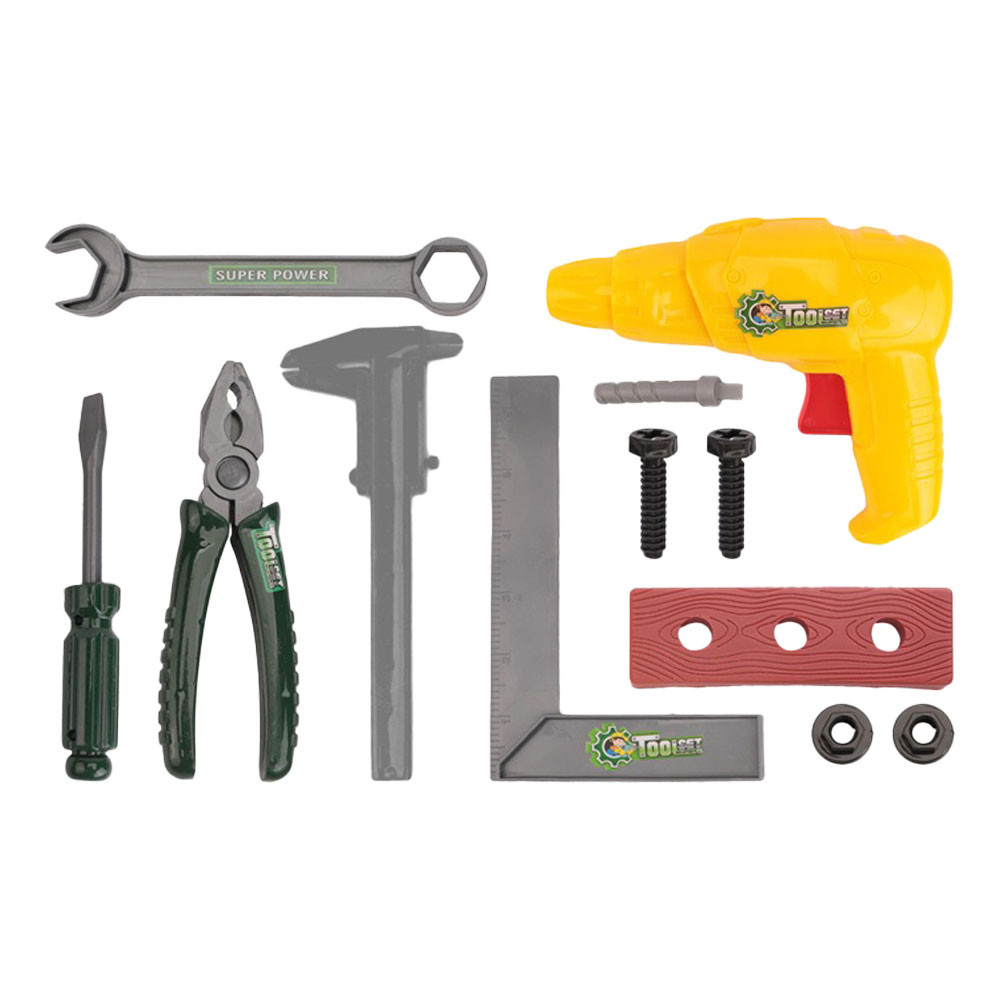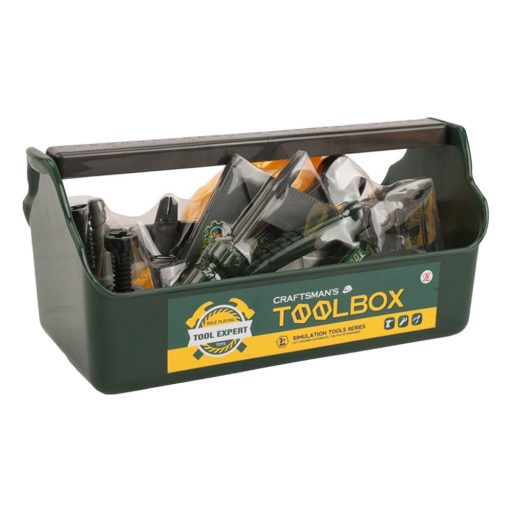 Szerszámos láda klt.,+ fúrógép, szerszám, manuális, 29x13 cm