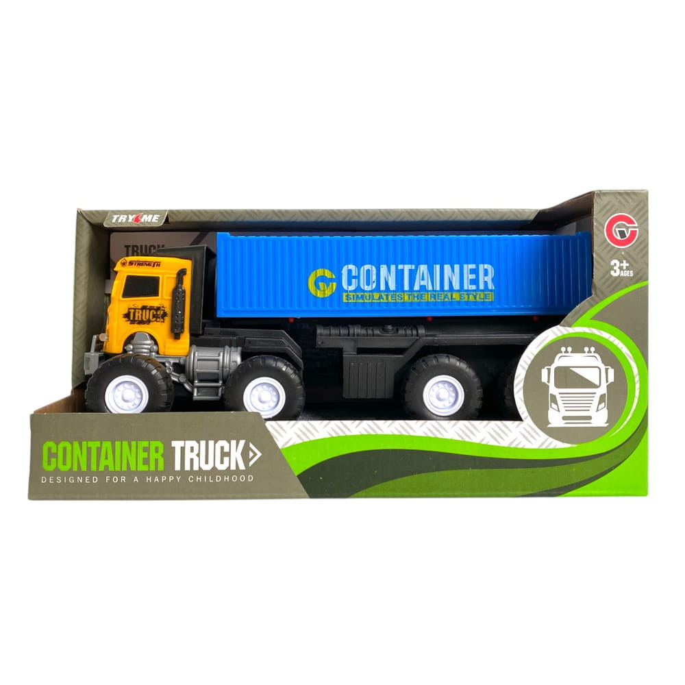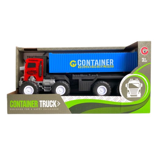 Teherautó, konténerszállító, el., igazi hang+fény, szabadonfutó, 2 szín, 22x11 cm dob. Gombel.
