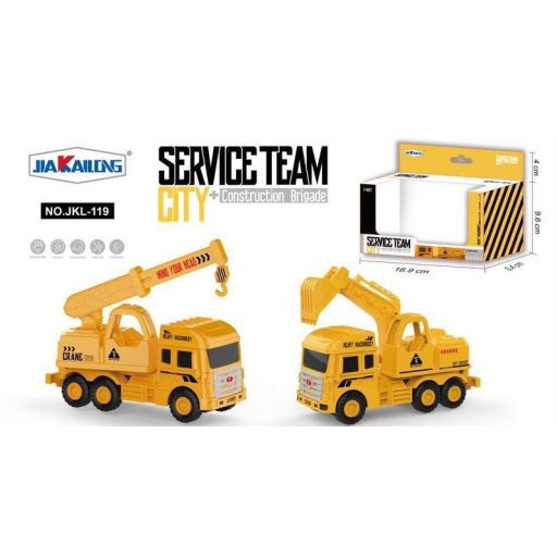 Teherautó, munkagépes, kampós/markolós, lend., 2 féle, 17x10+ cm dob.