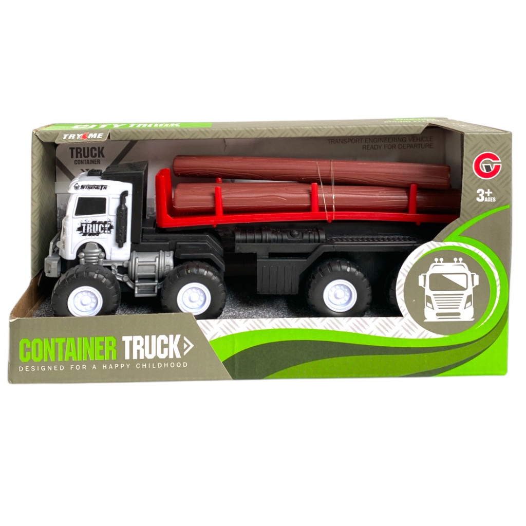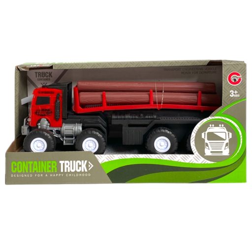 Teherautó, rönkszállító, el., igazi hang+fény, 2 szín, 22x11 cm dob. Gombel.