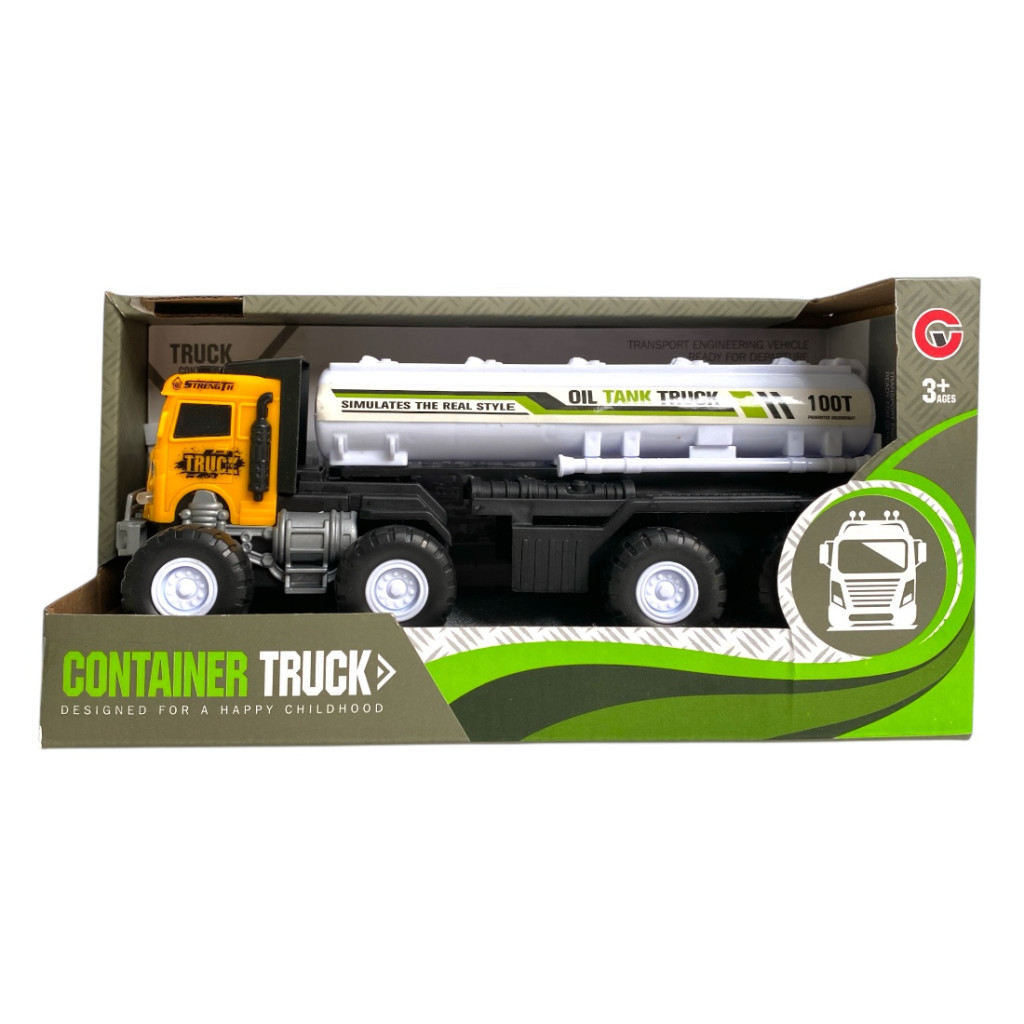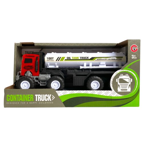 Teherautó, tartályos, el., igazi hang+fény, szabadonfutó, 2 szín, 22x11 cm dob. Gombel.