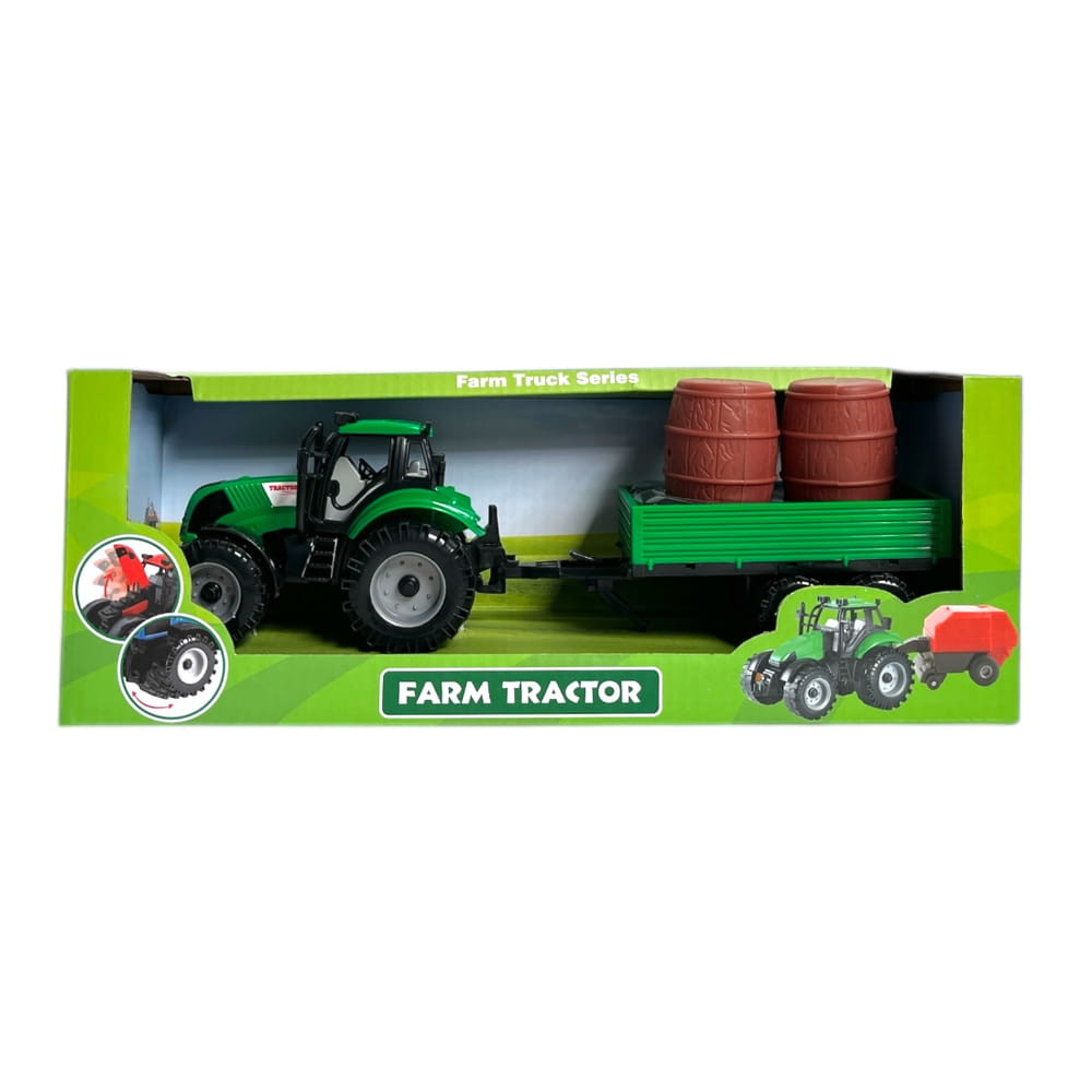 Traktor, hátul hordószállító, lend., 2 szín, 31x12 cm dob.