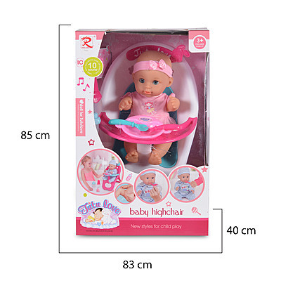 Baba 36 cm-es szett etetőszékkel, tányérral