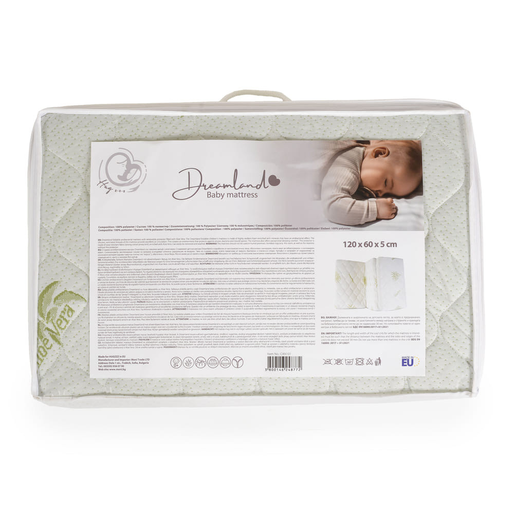 A DREAMLAND összecsukható matrac minden babaszoba főszereplője lehet. Az Aloe Vera bevonattal készült, mely természetes antibakteriális tulajdonságokkal rendelkezik, így a baba bőrének egészségét is megőrzi. A matrac mérete 120 cm x 60 cm x 5 cm, ami tökéletesen illeszkedik egy játszószoba vagy bölcső méretéhez. Az összecsukható kialakításnak köszönhetően könnyen szállítható és tárolható, így ha a baba nappali alvásra vágyik, vagy éppen utazni készültök, ezt a matracot könnyedén magatokkal vihetitek. A fehér szín pedig bármilyen szoba dekorációjához illik. Kényelmes, praktikus és stílusos - ez a matrac minden baba álma!