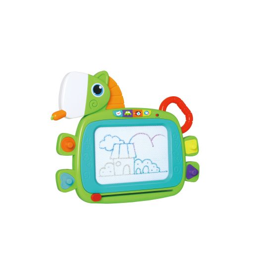 HOLA mágneses rajzoló tábla zenél, világít. Pónis kialakítás; ergonomikus fogantyú; hanghatás; zenegomb; a radírt oldalra csúsztatva tisztára törölheti a táblát és szórakoztató hanghatásokat játszhatTermékméret:
