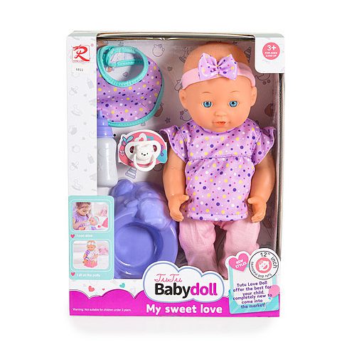 31 cm-es baba bilivel és cumival. A készlet tartalmaz egy cumisüveget, egy cumit és egy bilit, amire a baba ráülhet. A mellékelt cumisüveg játék, és nem alkalmas csecsemők vagy gyermekek számára. A termék 3 évesnél idősebb gyermekek számára készült. Márka: Tutu love Méret: x6x31 сm Csomag mérete: 25x10.5x32 cm Súly kg: 0.4