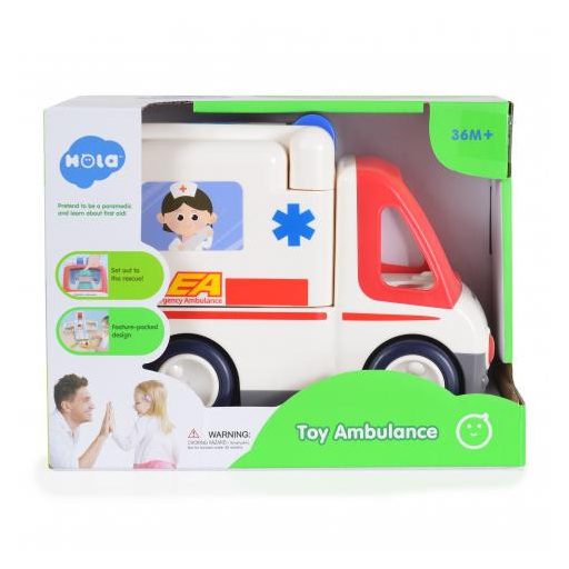 Mozgó zenés mentőautó, amely kinyílik és orvosi játékká változik. Az autóban dallamok, hangeffektusok (mentőautó, kardiogram stb.) és könnyű, szabadon forgó kerekek és akadályba ütközéskor irányváltoztató funkció található. A jármű kinyitásakor a gyermek az orvos szerepét tölti be, az orvosi műszerekkel vizsgálva a beteget. Kiváló szerepjáték. Egy innovatív játék, amely elfoglalja a gyermeket, de ugyanakkor azt az érzést kelti benne, hogy törődnek vele, ugyanakkor segít leküzdeni az orvostól való félelmét.