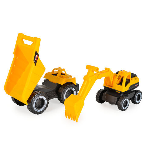 Polesie Fiú játék autó 2 db teherautó homlokrakodóval és dömperrel