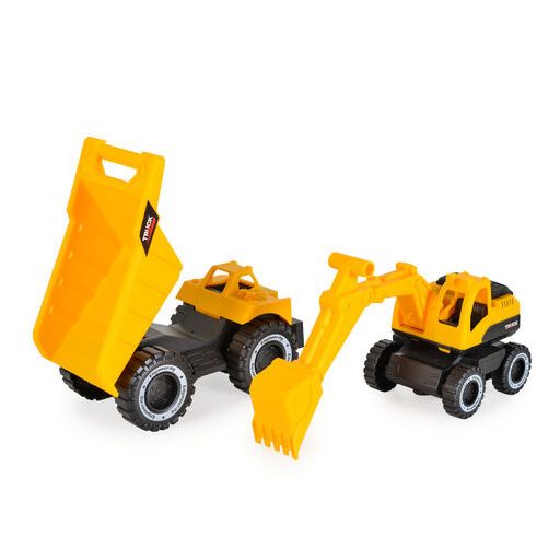FIÚ játék AUTÓ 2 db teherautó homlokrakodóval és dömperrel