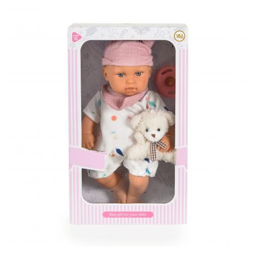 Baba, 30 cm-es, mellékelt kiegészítőkkel - cumival és kis plüss macival.