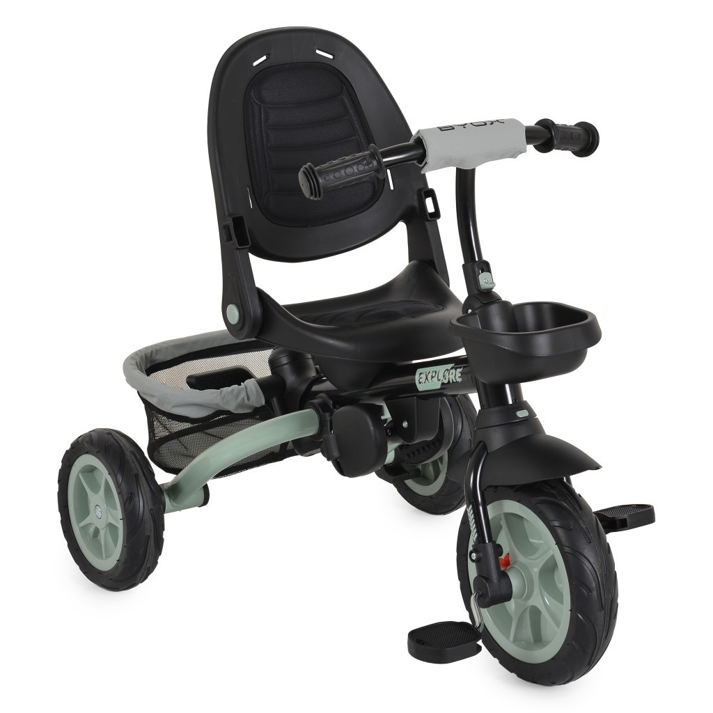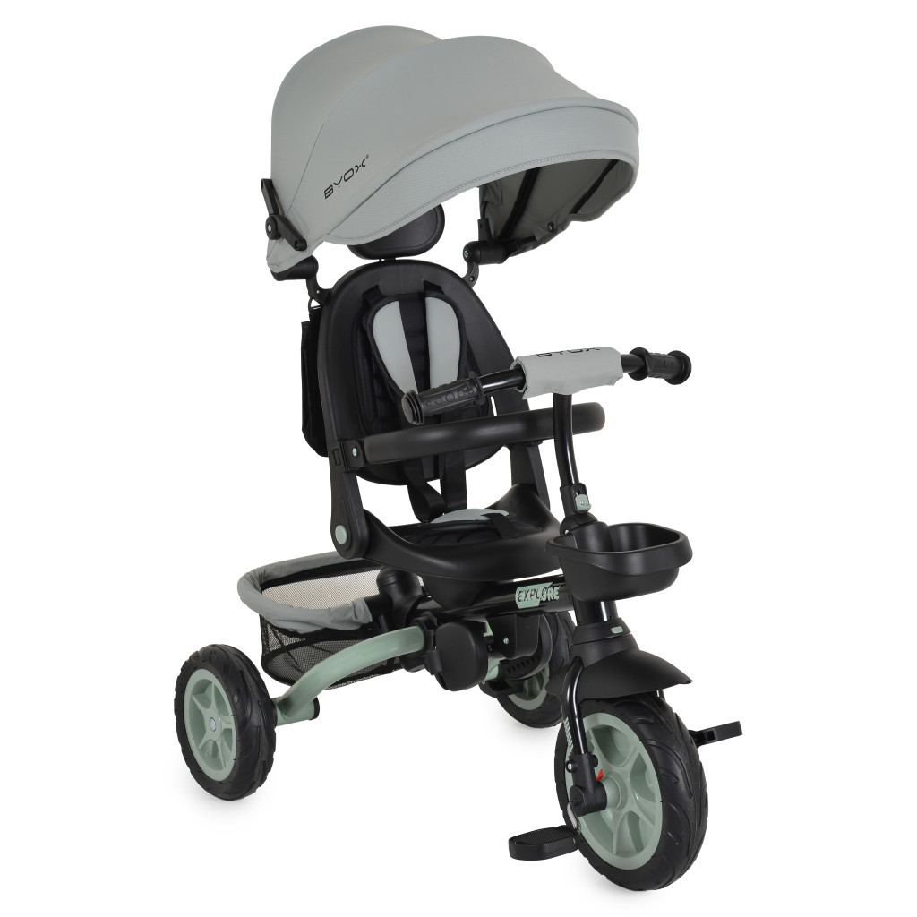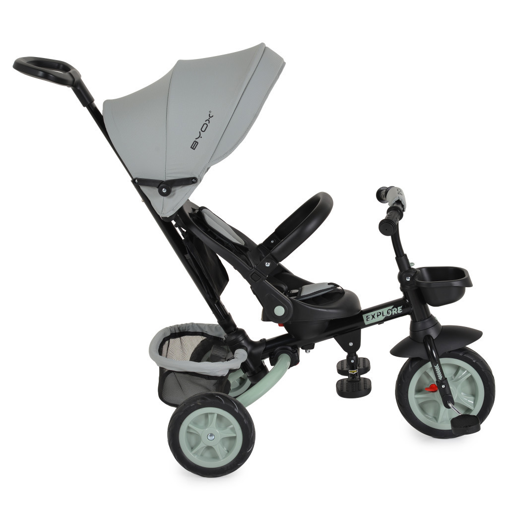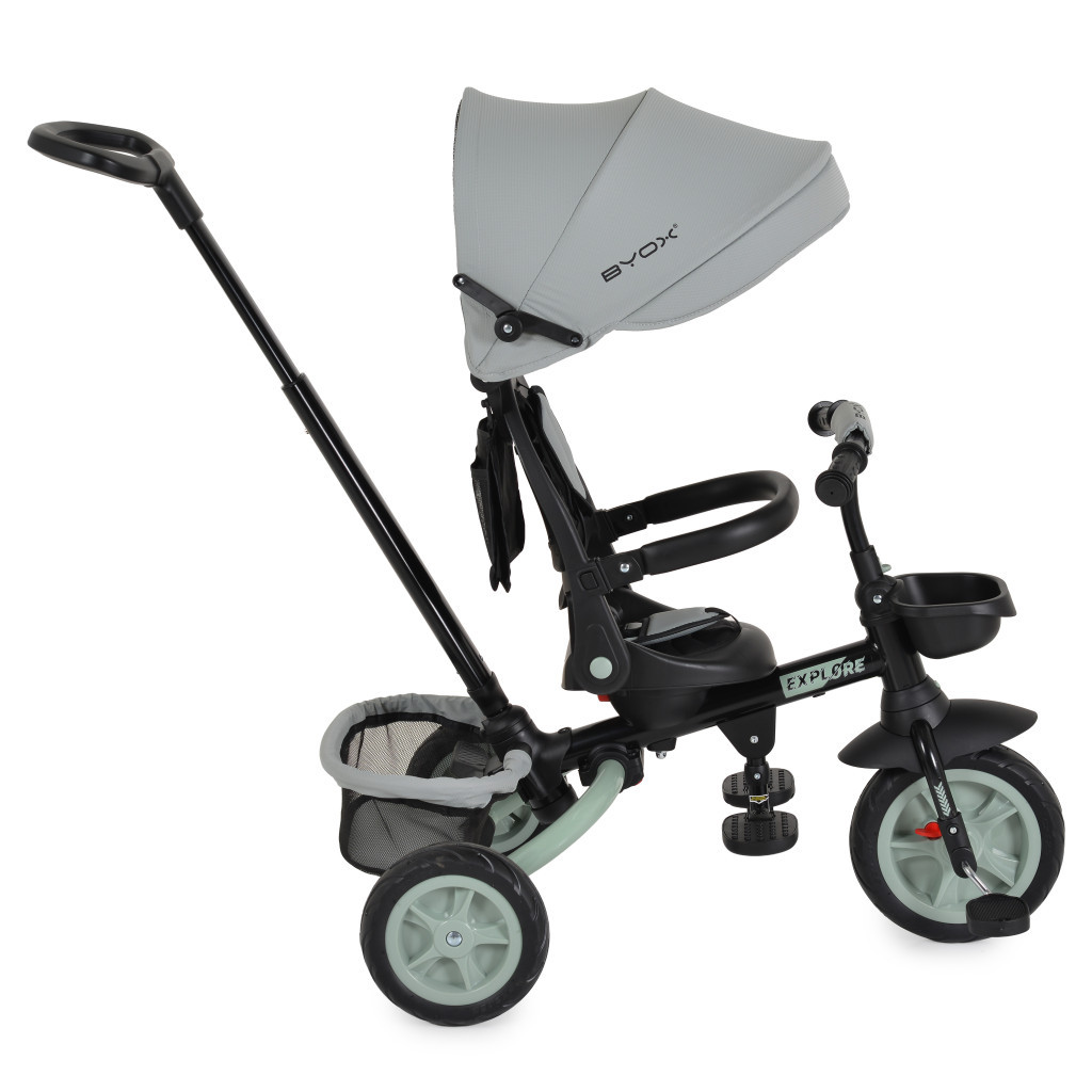 A Byox Explore triciklije 12-60 hónapos gyermekek számára készült, maximum 25 kg-os súlyig. Az Explore alkalmazkodik a gyermek életkorához és képességeihez, különböző használati módokat kínálva, amelyek lehetővé teszik a zökkenőmentes átmenetet a szülői felügyeletről az önálló kerékpározásra.