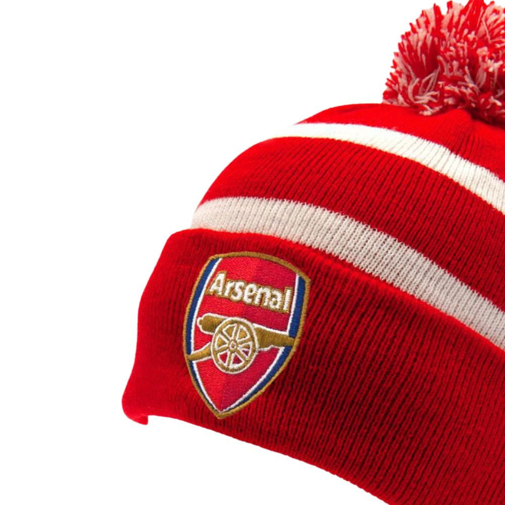 Arsenal FC kötött pomponos sapka – piros-fehér csíkos
