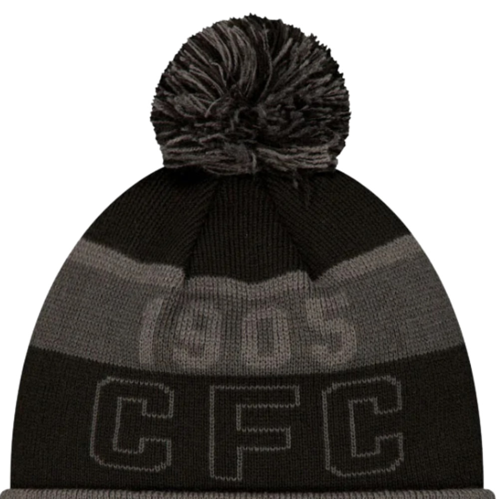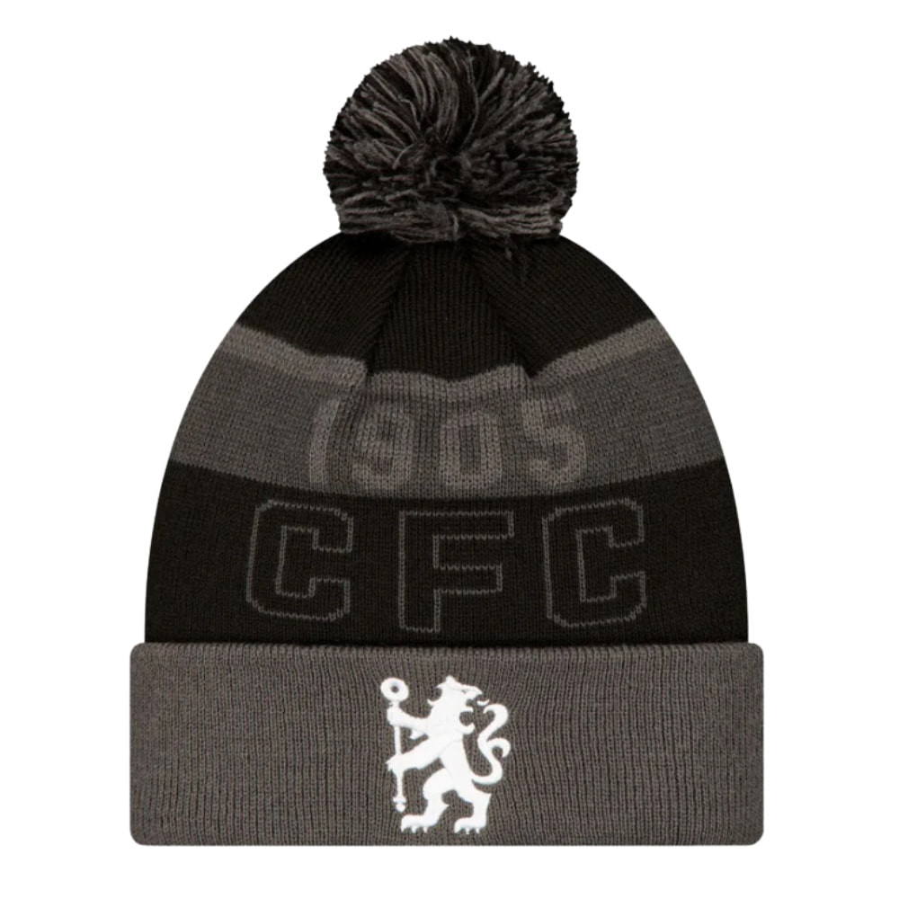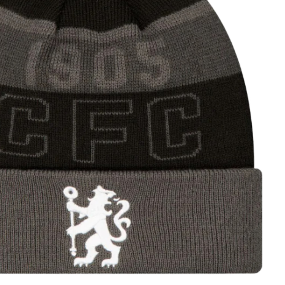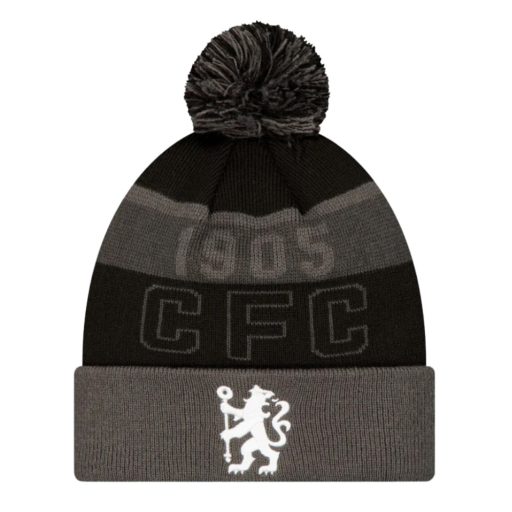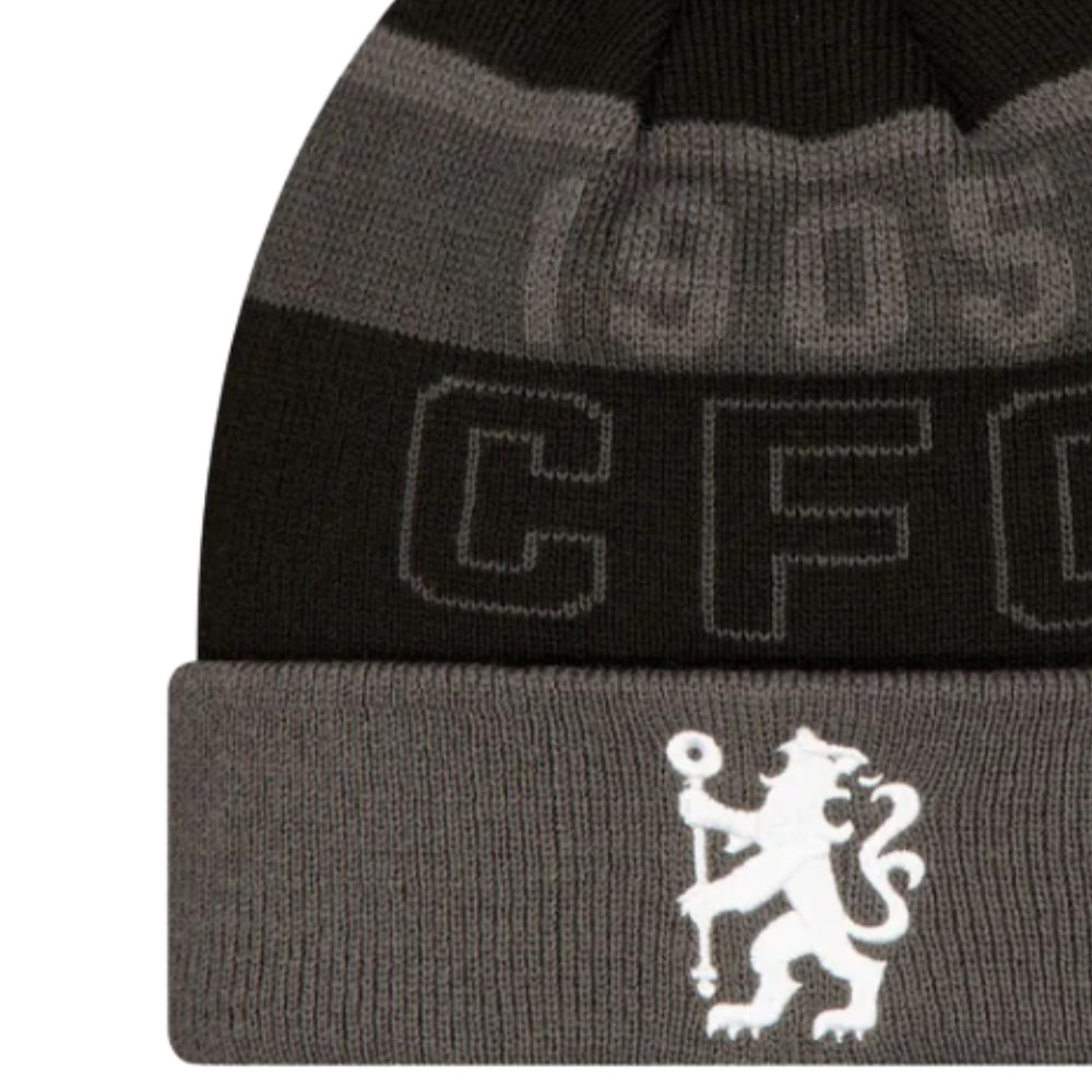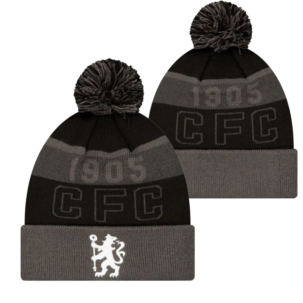 A szürke-fekete csíkos dizájn és a bojtos kialakítás klasszikus, sportos megjelenést biztosít a hideg téli napokon, miközben a középen elhelyezett hímzett Chelsea logó és a CFC felirat büszkén mutatja a csapat iránti hűséget.