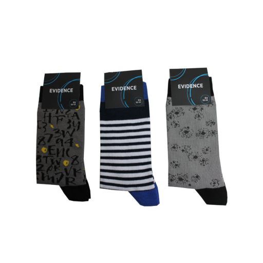 Férfi pamut zokni - 3 pár - mintás - 43-46 - szürke-fehér-világosszürke - Evidence